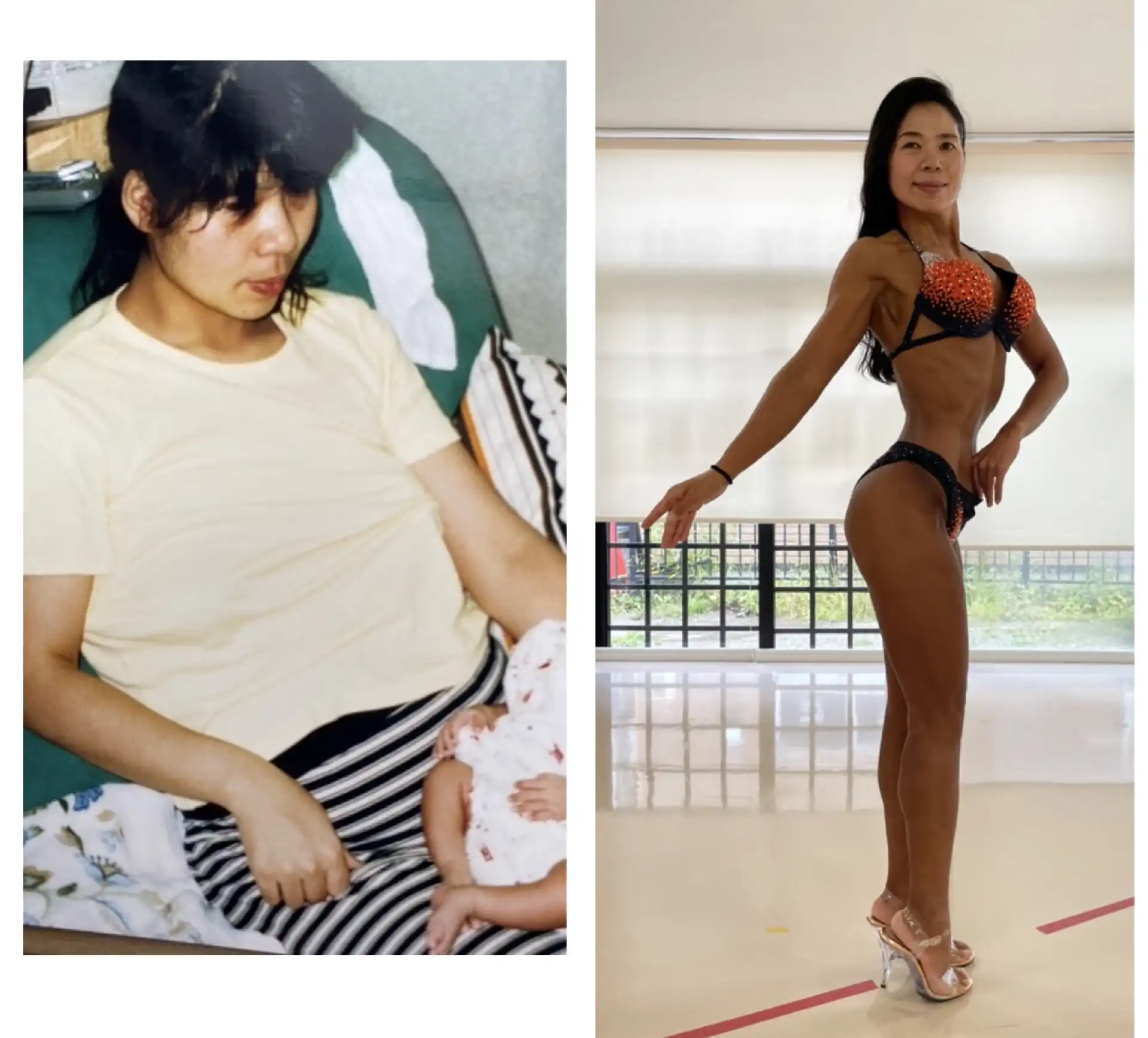 「どうせなら目標を持って」と決意し、ビキニフィットネスの大会へ。2019〜2022年に出場し、一度は全国大会にも進出。